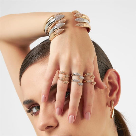 18 kt Gold Plated Tricolor Snake CZ Stackable Bracelets