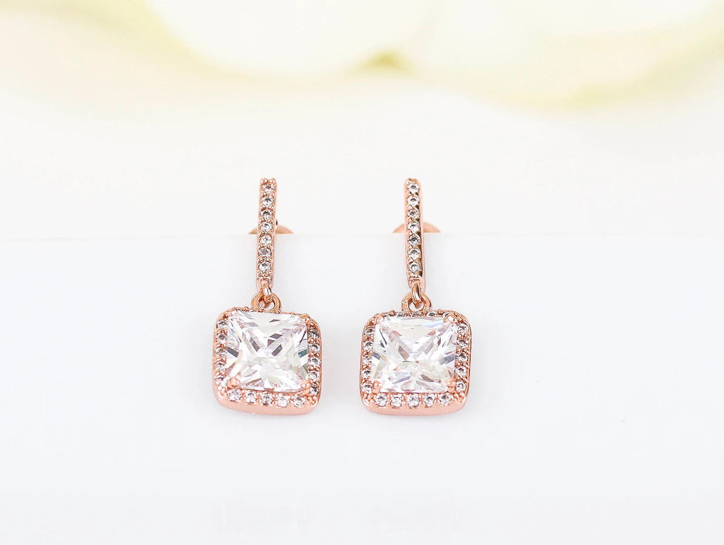 Navy blue ROSE GOLD Wedding Jewelry Bridesmaid Gift Bridesmaid Jewelry Bridal Jewelry Drop Earrings Bridesmaid Proposal Bridal Party